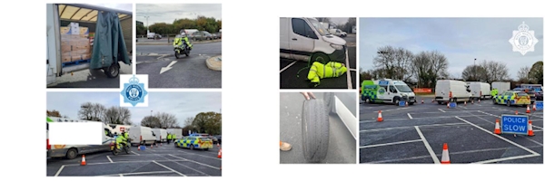 Two men were arrested for drink and drug driving offences and multiple vehicles were found to be unroadworthy during a road safety operation on Tuesday (4 November). Officers from West Mercia’s Operational Policing Unit (OPU), supported by colleagues from our Motorcycle Traffic Support Team (MTST) and partner agencies including the Driver and Vehicle Standards Agency (DVSA), Vehicle and Operator Services Agency (VOSA) held a day of action at Strensham Services on the M5 Southbound. A total of 31 vehicles were brought into the site which resulted in 20 vehicles being served with a Traffic Offence Report (TOR) for offences including no road tax, no insurance, driving other than in accordance with their licence, excessive tints and mobile phone offences. Ten vans were over their weight limit – with one van being three tonnes over. Another had a tyre so bald the core was exposed around the whole circumference. An HGV driver was pulled in for being on his mobile phone. Another HGV driver who drove through the car park to avoid the police inspection area struck two cars before rejoining the motorway. The lorry was stopped by police on the M50 and a man in his 40s was arrested on suspicion of being over the drink drive limit. Both drivers have been reported to the Traffic Commissioner. A man in his 30s was also arrested on suspicion of drug driving during the operation. DVSA prohibited eight vehicles – with a total of 14 defects detected meaning they were immediately prohibited. These included a defective handbrake and an ABS brakes issue. Ten had defects which resulted in delayed prohibitions. Two fixed penalty notices were issued for inoperative indicators, and one vehicle was found to have removed the diesel particulate filter from the exhaust with fumes entering the driver’s cab. In total, three were immobilised by the DVSA and left at the site as they were not fit to rejoin the roads. PC Gethin Venn of the OPU said: “Our vehicle safety operation successfully took unroadworthy and dangerous vehicles off our roads on Tuesday, many of which were in a dangerous condition that were a risk to all road users. “The HGV driver who tried to evade police was thankfully arrested and detained. It does not need saying how dangerous driving while under the influence of alcohol is wherever it happens, let alone in a large and heavy vehicle on a busy motorway. “Another man who was stopped was arrested on suspicion of being under the influence of drugs while driving too – aside from this, the state of his vehicle could have had consequences for others if he had to stop suddenly so that’s another potentially dangerous situation averted. “Our advice to road users is to make sure you are insured, have a valid MOT and your vehicle is in a roadworthy condition for everyone’s sake. “Please also make sure your tyres are properly inflated by checking once a week and make sure you have washer fluid with the correct anti-freeze solution in them as we head into winter.”