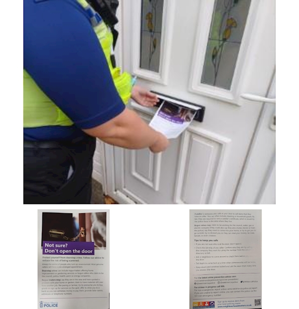 Redditch Safer Neighbourhood Team have been in the Woodrow area delivering leaflets on cold calling and rogue traders. Remember: For non emergencies report online: www.westmercia.police.uk/report. If you are unable to report online, you can contact the police via 101 non-emergency number.