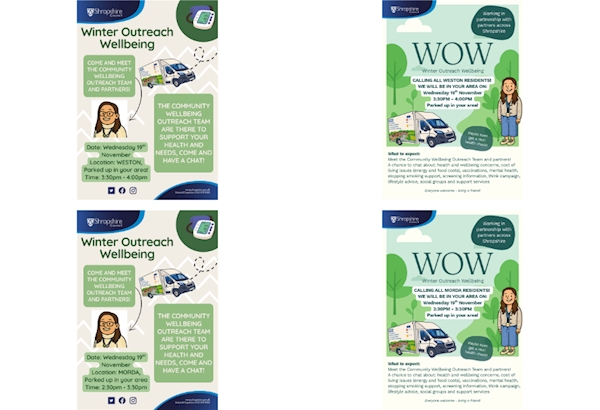 We have been made aware of a fantastic initiative being run by Shropshire Council - the Winter Outreach Wellbeing Van. This will be visiting Weston & Morda this coming Wednesday the 19th Nov. We will join the them to see what greata advice they are there to offer, and answer any Police-related questions that may arise. Full details are on the four attachments.