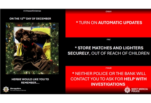 During December West Mercia Police Cyber Crime Unit and Shropshire Fire and Rescue Service would like to offer advice on how to stay safe over the festive period…..