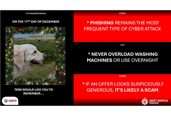 During December West Mercia Police Cyber Crime Unit and Hereford & Worcester Fire and Rescue Service would like to offer advice on how to stay safe over the festive period…..