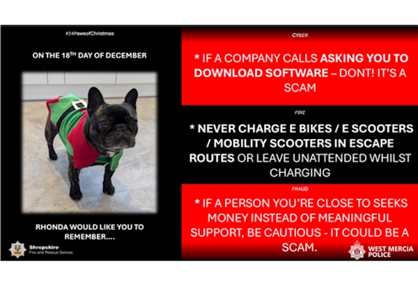 During December West Mercia Police Cyber Crime Unit and Shropshire Fire and Rescue Service would like to offer advice on how to stay safe over the festive period…..