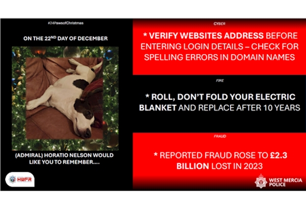 During December West Mercia Police Cyber Crime Unit and Hereford & Worcester Fire and Rescue Service would like to offer advice on how to stay safe over the festive period…..