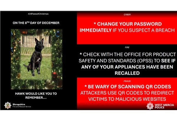 During December West Mercia Police Cyber Crime Unit and Shropshire Fire and Rescue Service would like to offer advice on how to stay safe over the festive period…..