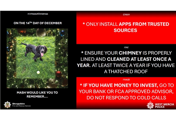 During December West Mercia Police Cyber Crime Unit and Shropshire Fire and Rescue Service would like to offer advice on how to stay safe over the festive period…..